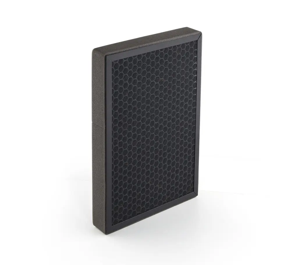 - Первый уровень фильтрации. Грубый пещеристый фильтр улавливает крупные, загрязняющие воздух частицы – пыль, пыльцу, пушинки и ворсинки от обитающих в помещении животных и птиц.